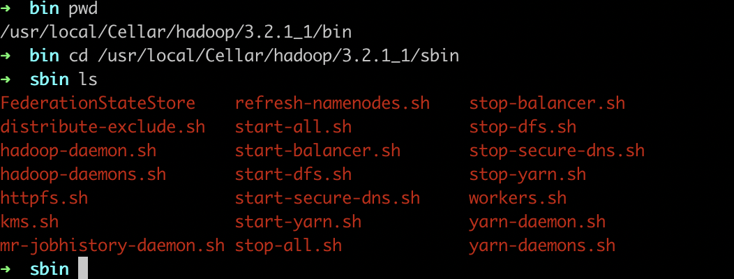 cd /usr/local/Cellar/hadoop/3.2.1_1/libexec/sbin
