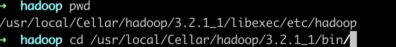 cd /usr/local/Cellar/hadoop/3.2.1_1/bin/
