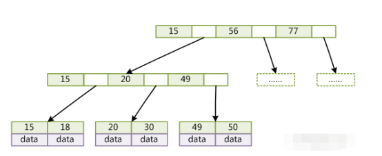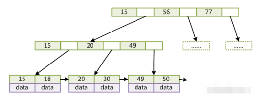 B+树索引:只有叶子节点才存储数据,并且之间有指针相连。