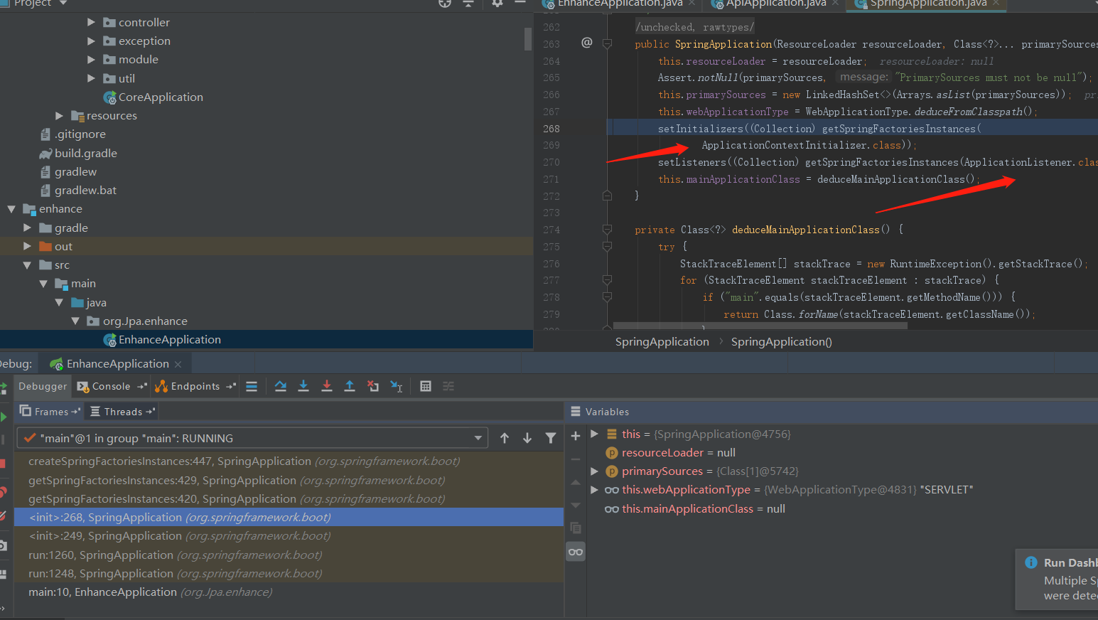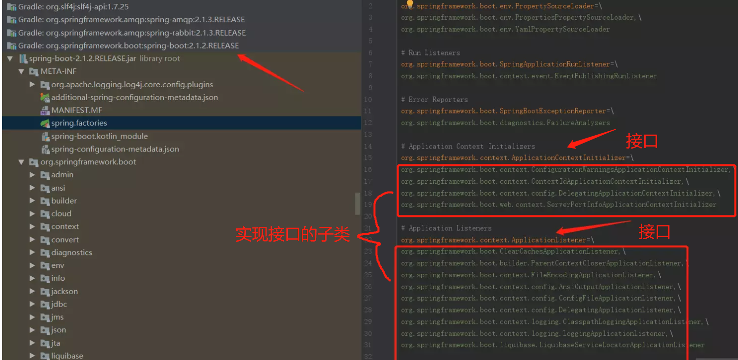 在SpringBoot启动时会筛选出META-INF/spring.factories 文件中实现 ApplicationContextInitializer 与 ApplicationListener的类
