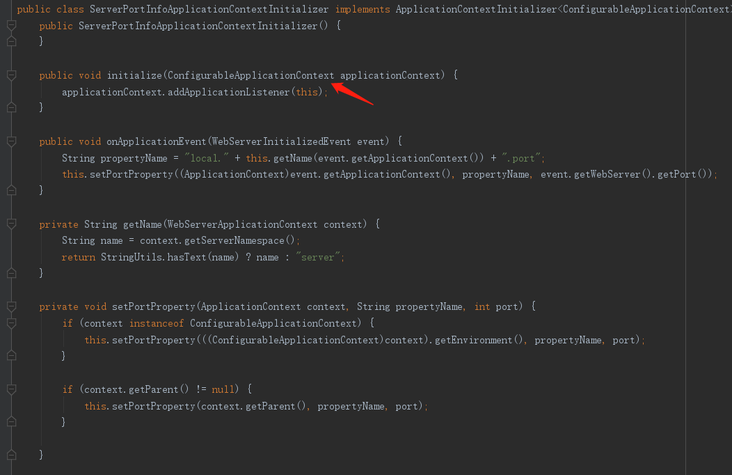 如ServerPortInfoApplicationContextInitializer,实现ApplicationContextInitializer 的initialize方法,当Spring实例化bean的过程中会调用initilize方法