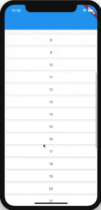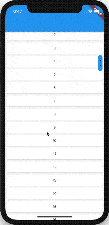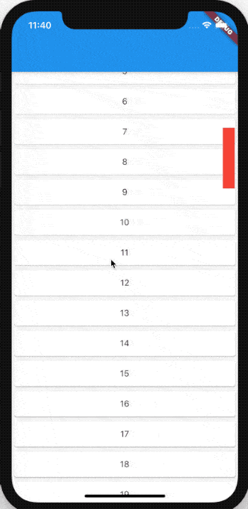 通过这两个值计算滚动条在当前屏幕的位置,通过 Stack 组件 将 ListView 和 自定义的滚动条进行叠加显示: