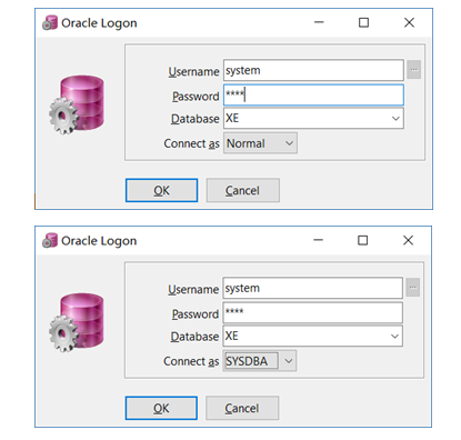 sqlplus [username/password][@server] [as sysdba|sysoper]
