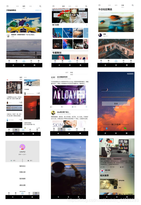 例如对于某些手机屏幕适配不太好,导致画面很奇怪,textview被莫名其妙放大或缩小;在个人模块,还没有实现缓存,观看记录等功能;某些地方(按钮,文字,图标)点不了;点赞评论等功能缺失;在社区的推荐模块,查看图片,图片加载很慢…等等还有很多问题,项目还会一直修改。