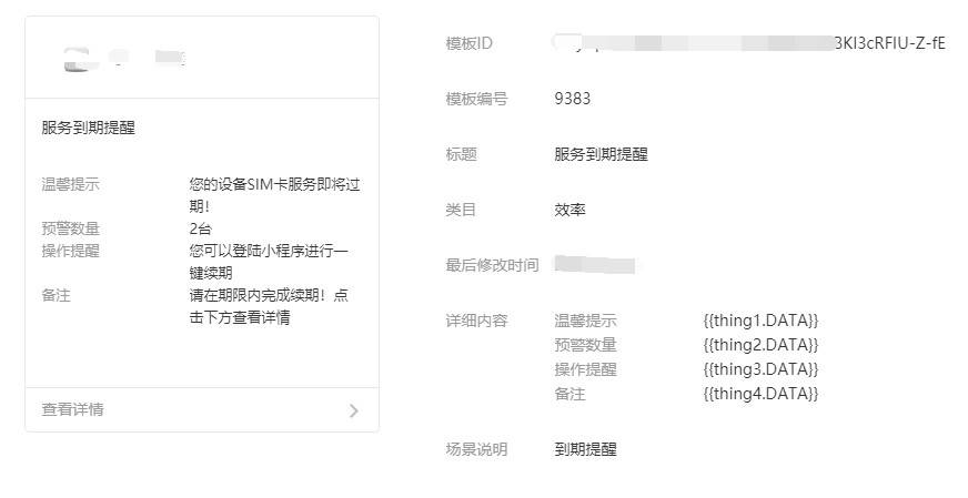 注意data里面的data参数名和上述的模板消息字段匹配,如thing1,thing2