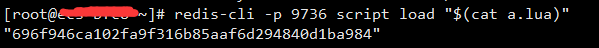 1. 编写好lua脚本文件 2. 将lua加载到redis服务中 redis-cli script load "$(cat 【替换成编写的lua文件名】.lua)" 执行成功后,会返回一段SHA码。 3. 执行 EvalSHA命令 注意复制第2步返回的SHA码 来源:oschina链接:https://my.oschina.net/90design/blog/4293992 标签 lua Redis Solid redis-cli