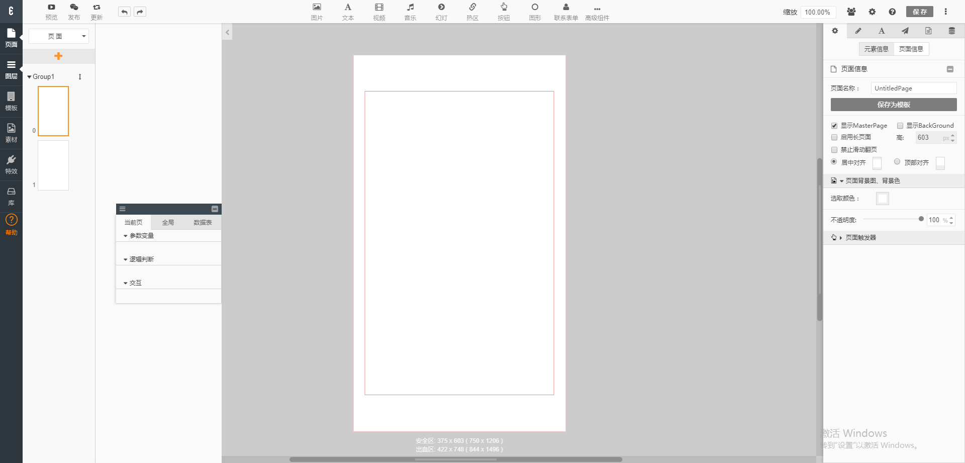 ④支持参数变量、条件判断、数据库等高级数据组件,可轻松实现测试题、抽奖、社交轻游戏类H5设计。