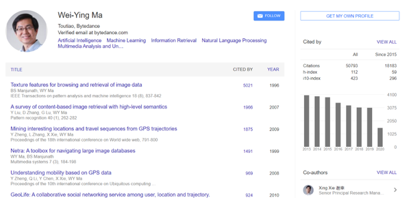 博士毕业至今,马维英一直活跃于业界的研究部门,先是在惠普实验室工作了四年,然后加入了有中国互联网「黄埔军校」之称的微软亚洲研究院,而且一待就是 16 年。2017 年,时任微软亚洲研究院常务副院长的马维英加入了字节跳动。
