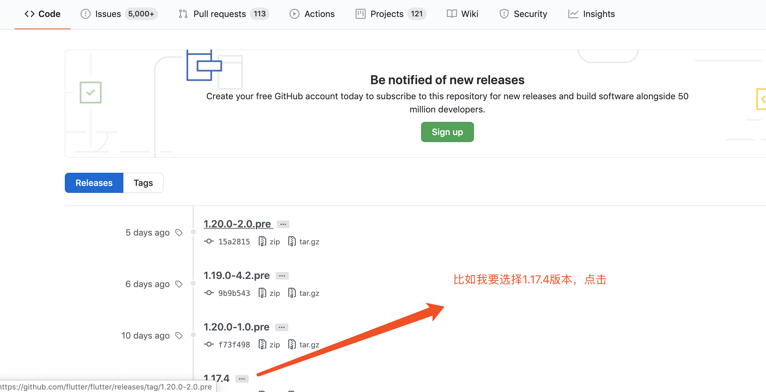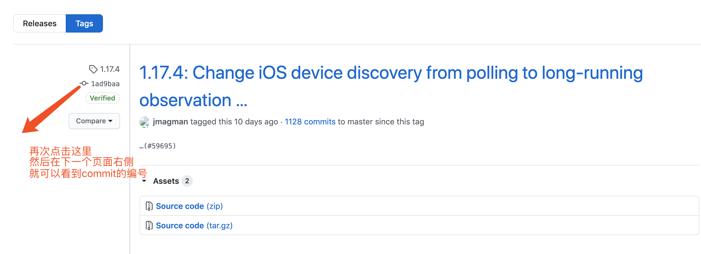 其中红色的字符串是commit版本号如下,可以到Flutter Git源码里面去找https://github.com/flutter/flutter(Releas--tags--找到具体的版本号,点击-- fabeb2a即可看到commit号)