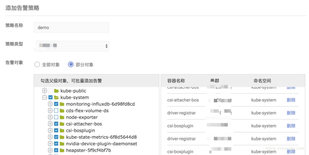 对于常见的 Pod 或应用监控,我们做了一些表单化,如下图所示:提取了 CPU、内存、磁盘 IO 等常见的指标作为选择项,方便配置。