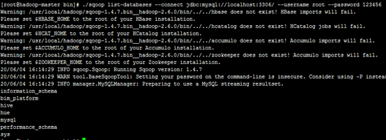 步骤阅读./sqoop list-databases --connect jdbc:mysql://localhost:3306/ --username root --password 123456