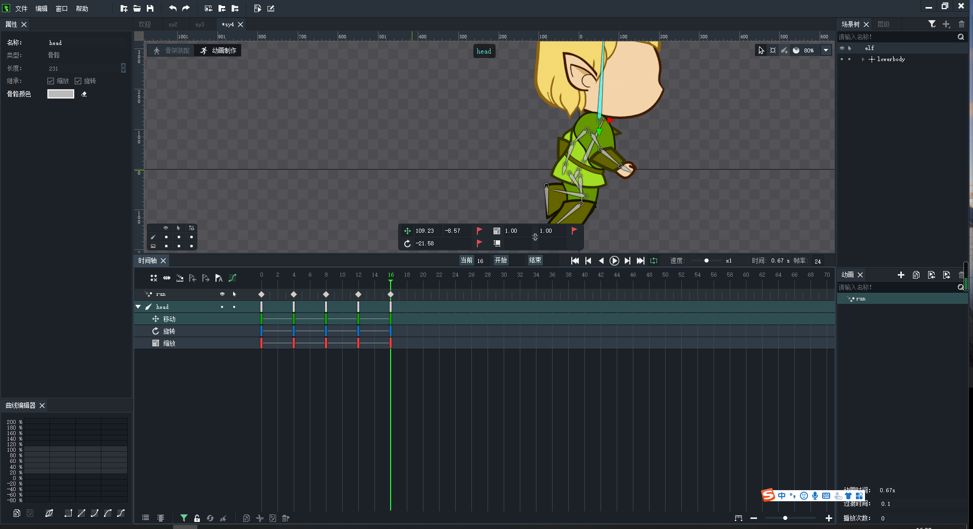 7、按照案例添加动画,创建run动画