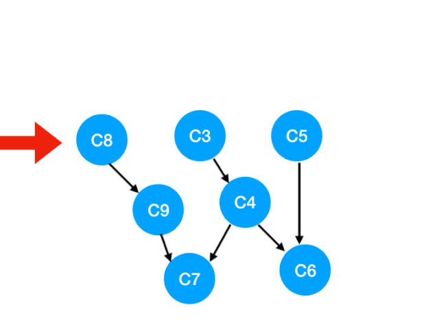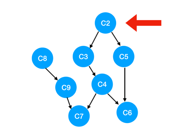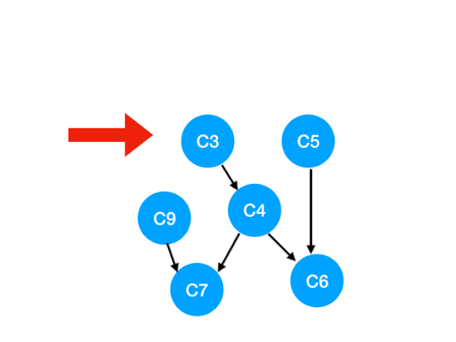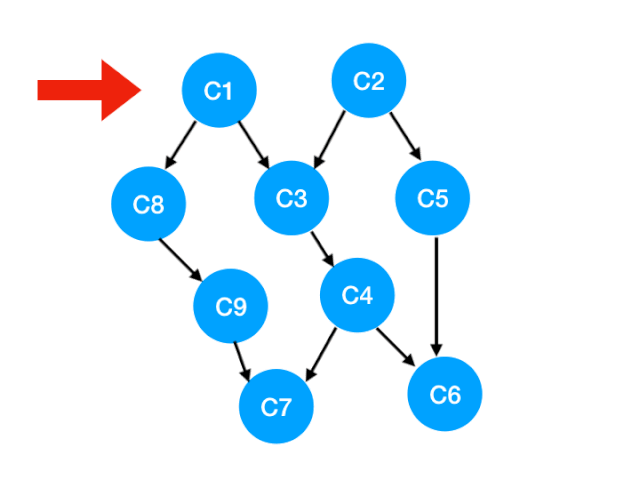 那么我们回想一下刚刚自己找拓扑序的过程,为什么我们先看上了 C1, C2?