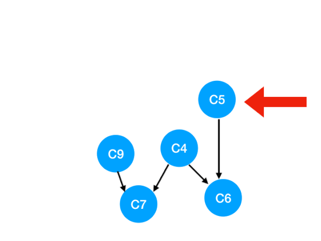 那么 C5 所指的 C4 和 C6 的入度- 1.