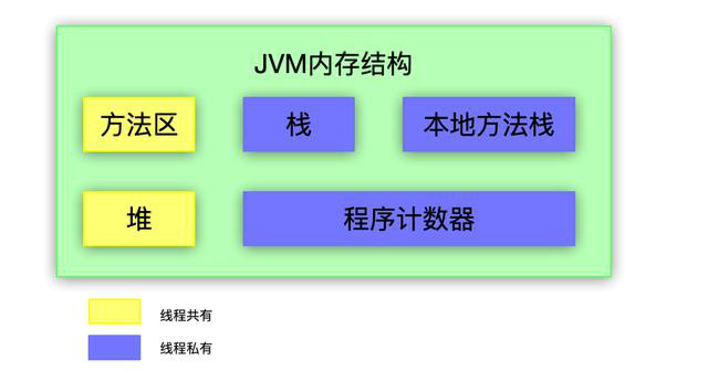 黄色部分为线程共有,蓝色部分为线程私有。