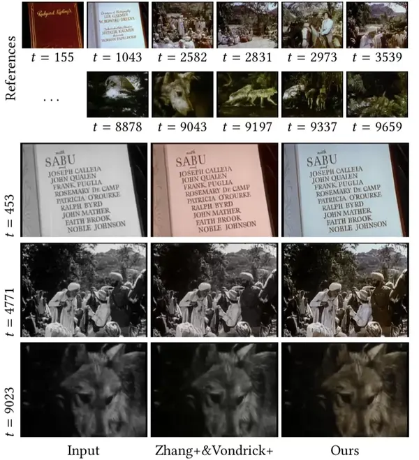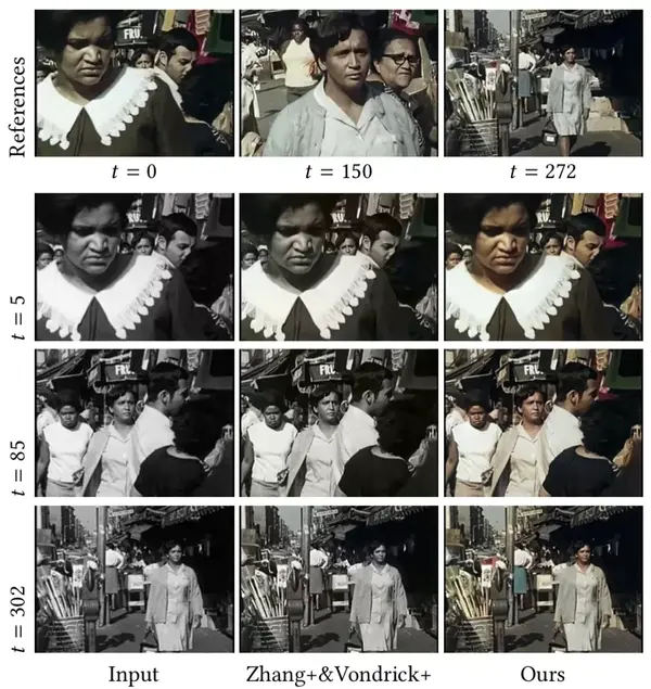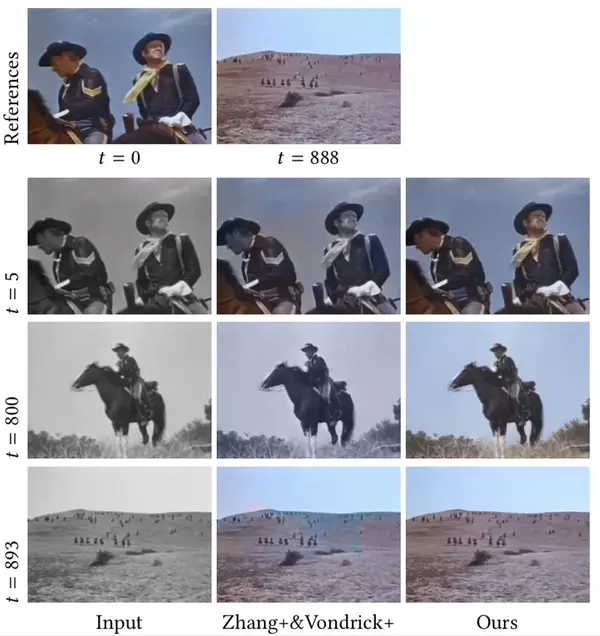 与以往方法相比,用 DeepRemaster 重制的图像与真实世界的色彩更加一致。