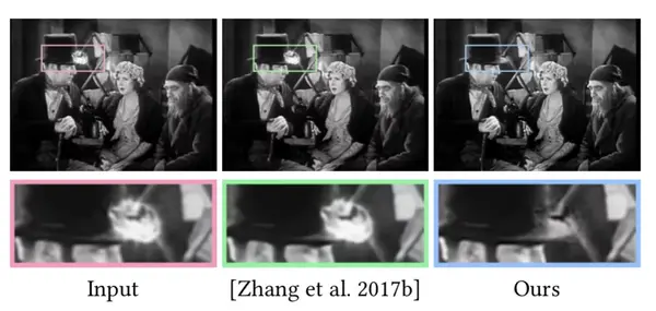老旧影片的修复包含多项步骤,比如超分辨率、噪声消除和对比度增强,旨在让已经老化的影片介质恢复到原始状态。当然,由于特定时代的技术限制,许多老旧影片要么是黑白影像,要么色彩呈现质量较低,因此在修复中也常常需要着色。