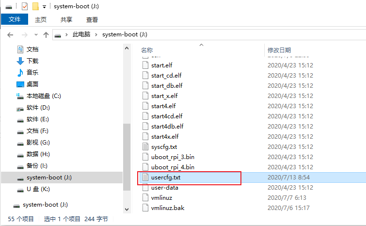 1. 断电取下内存卡插入到win10电脑上,修改内存卡下的usercfg.txt文件