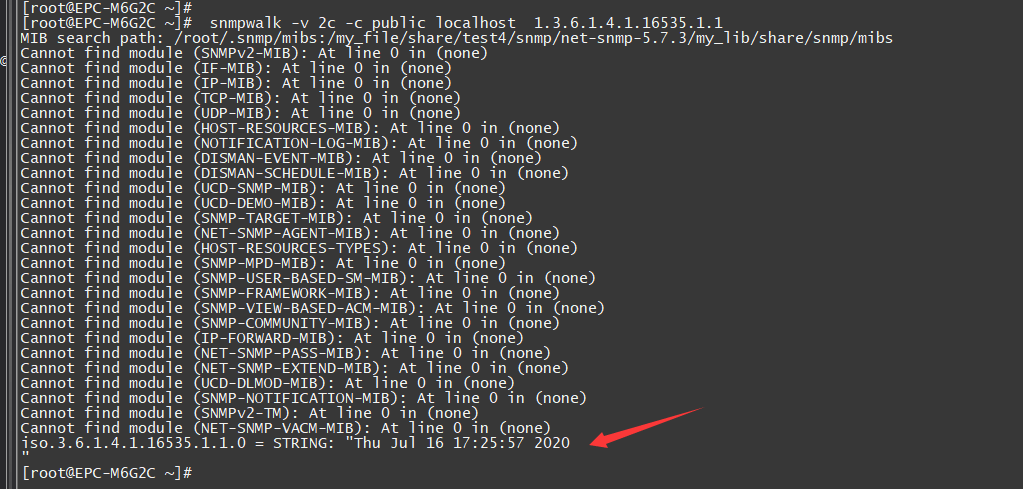 snmpwalk -v 2c -c public localhost 1.3.6.1.4.1.16535.1.1