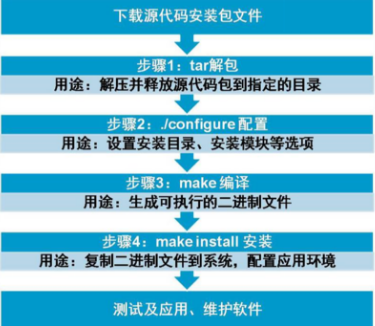 | 源代码软件包 | -般为".tar.gz" 、".tar.bz2" 等格式的压缩包。包含程序的原始代码 |