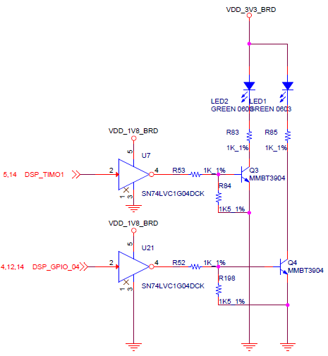 开发板底板具有1个电源指示灯(LED0),有两个用户可编程指示灯(LED1、LED2),硬件及引脚定义如下图: