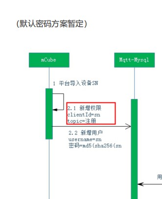 1. 先增加设备SN(平台设备导入SN) 2. 新增权限,其中新增权限这个对不上 但是PDF说的是什么? 这一步不需要用户整,平台会自动搞定 3. 新增用户,这一步不需要用户整,平台会自动搞定 4. 测试设备首次登陆问题,使用MQTT工具模拟测试,使用软件 来源:oschina链接:https://my.oschina.net/u/4335103/blog/4304676 标签 mqtt