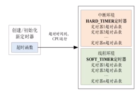 HARD_ _TIMER 模式的定时器超时函数在中断上下文环境中执行,此模式在定时器初始化时指定。在中断上下文环境中执行时,对于超时函数的要求与中断服务例程的要求相同:执行时间应该尽量短,执行时不应导致当前,上”下文挂起。HARD_ TIMER 模式是RT-Thread软件定时器的默认方式。