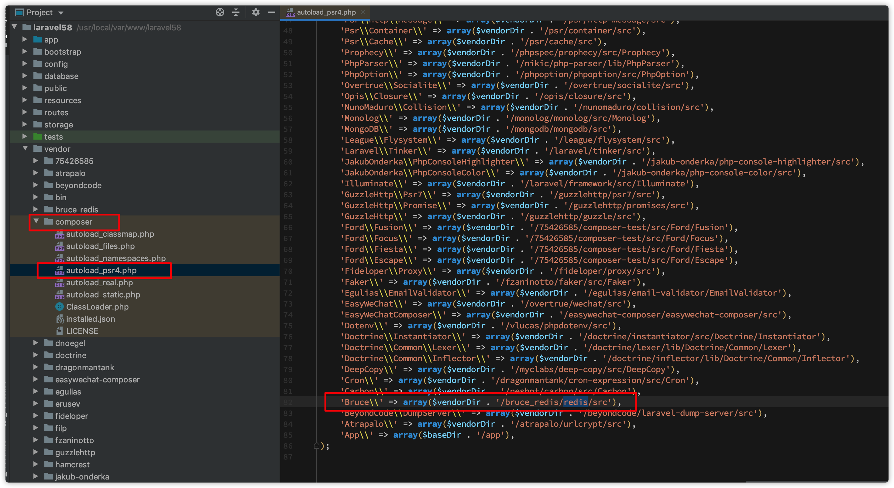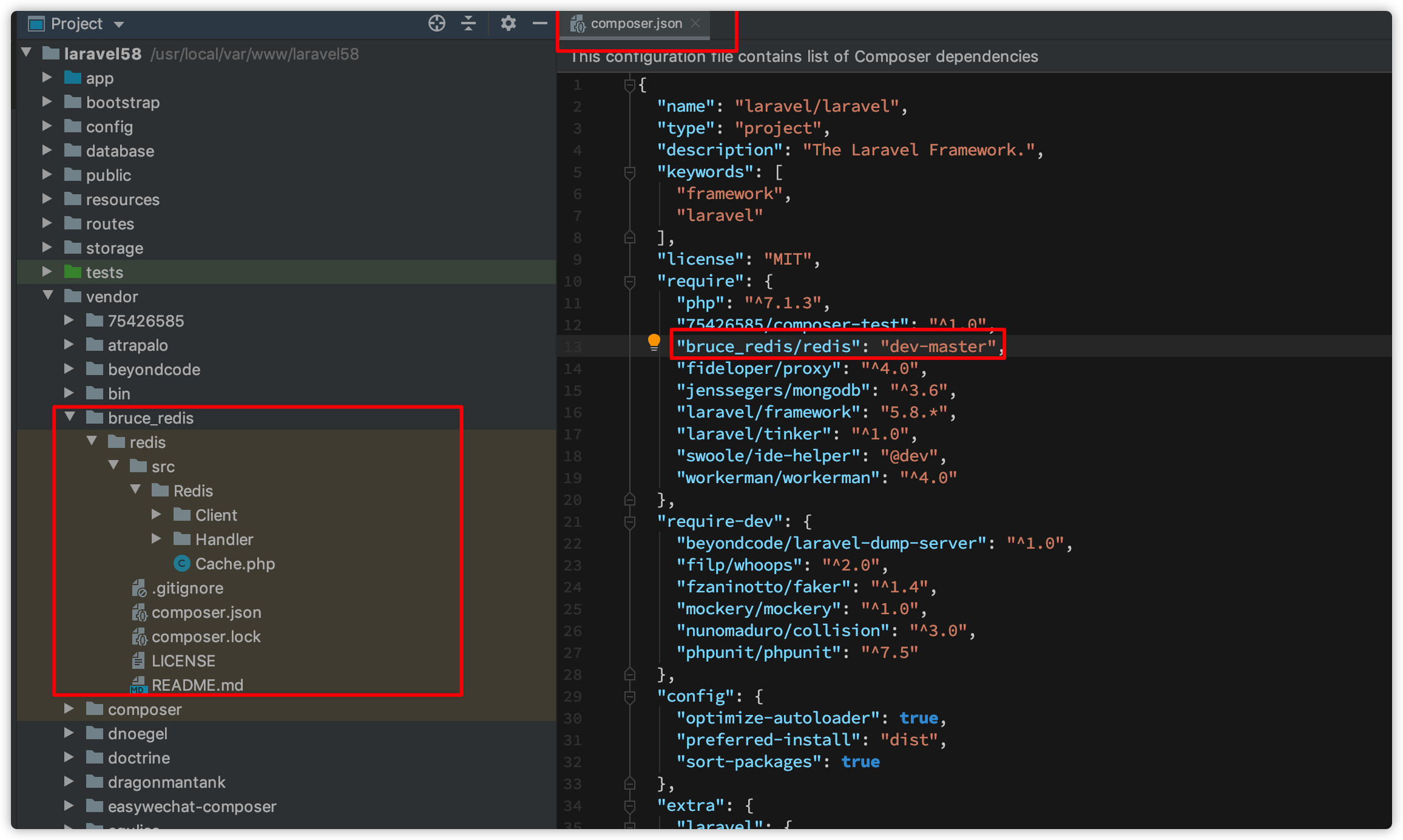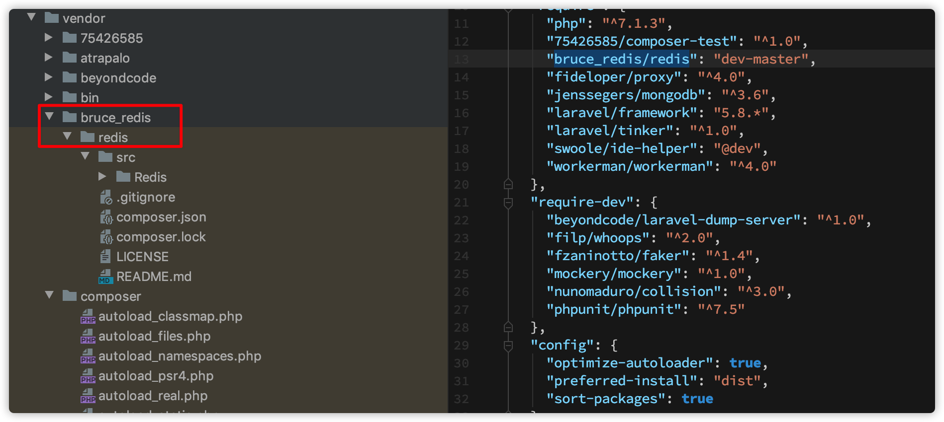 这里的/bruce_redis/redis/src值就是,composer.json里面的name(<vendor>/<name>)值。