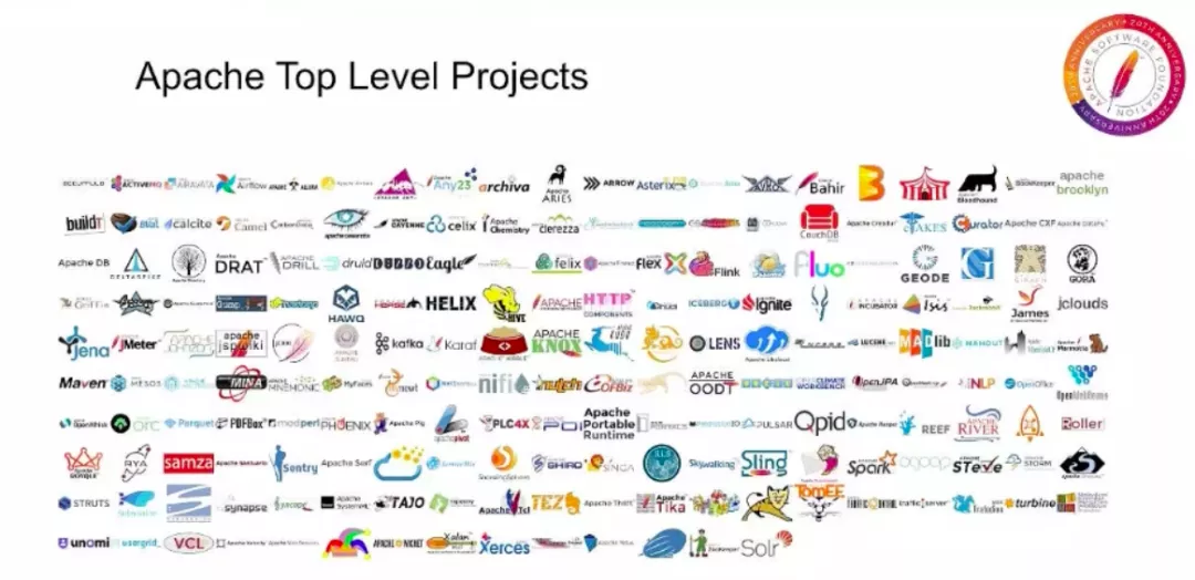 从上图我们可以看到,大家所熟知的诸多开源项目均在其中,比如以下几个 Apache 顶级项目: