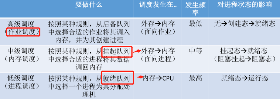 高级调度直接将调度的任务执行的任务给处理机,先放到任务(作业)队列中