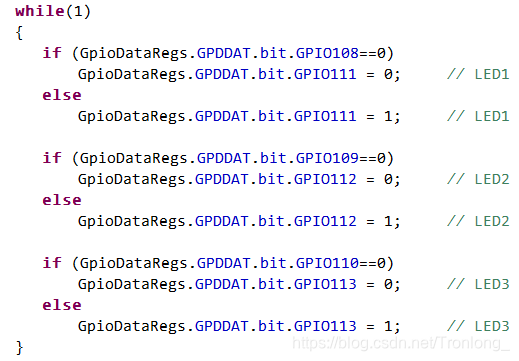 本例程的作用是实现GPIO输入功能,使用查询方式检测KEY1,KEY2和KEY3。
