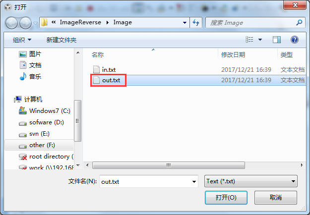 选择out.txt配置文件,位于ImageReverse工程Image目录下,如下图所示: