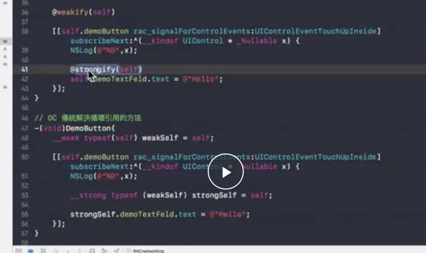 @weakify(self) // 一旦写上这句话 它下面的代码,不用改 self. 都自动被打上了 弱引用,也不用修改 self 为 weakSelf. ,看实现的话是用forech 宏循环都打上了weak 好像最大20个数量限制吧。