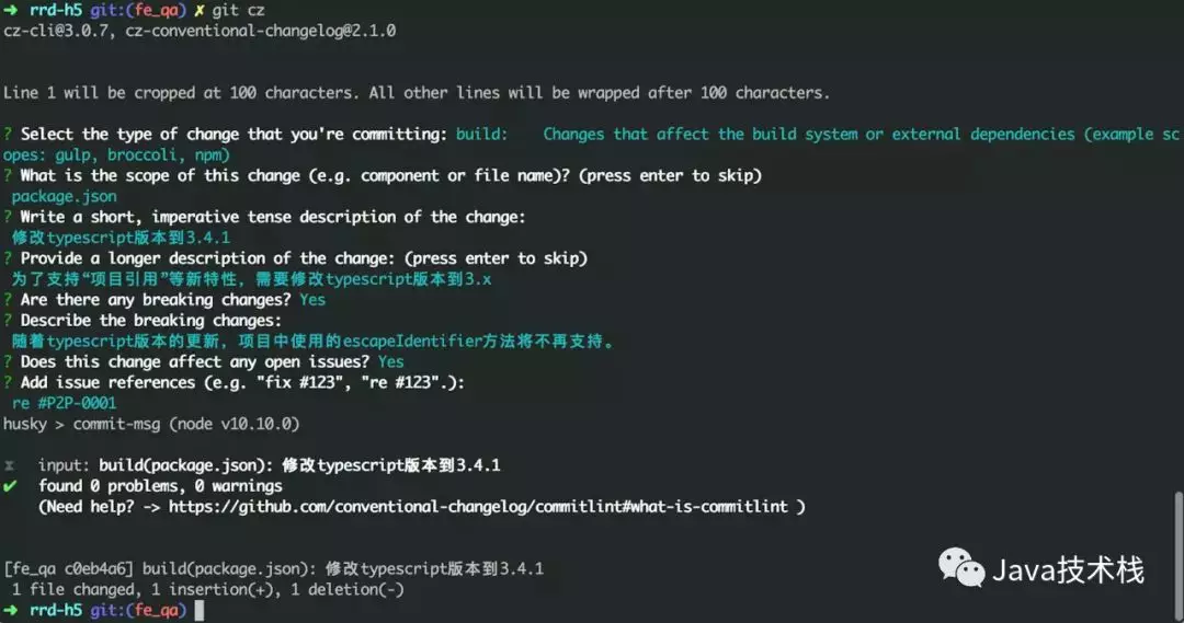 填写完毕后,husky会调用commitlint对message进行格式校验,默认规定type及subject为必填项。