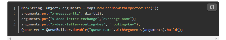 死信队列设置:需要设置死信队列的exchange和queue,然后通过routing key进行绑定。只不过我们需要在队列加上一个参数即可。