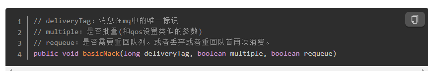 消费端重回队列是为了对没有成功处理消息,把消息重新返回到Broker。一般来说,实际应用中都会关闭重回队列,也就是设置为false。