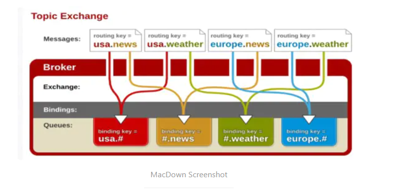 Exchange分发消息时,根据类型的不同分发策略有区别。目前共四种类型:direct、fanout、topic、headers(headers匹配AMQP消息的header而不是路由键(Routing-key),此外headers交换器和direct交换器完全一致,但是性能差了很多,目前几乎用不到了。所以直接看另外三种类型。)。