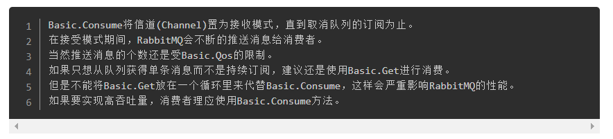 - 通过自定义Consumer,实现更加方便、可读性更强、解耦性更强的方式。(现默认使用的模式,直接订阅到queue上,如果有数据,就等待mq推送过来)
