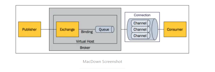 Broker:标识消息队列服务器实体.Virtual Host:虚拟主机。标识一批交换机、消息队列和相关对象。虚拟主机是共享相同的身份认证和加密环境的独立服务器域。每个vhost本质上就是一个mini版的RabbitMQ服务器,拥有自己的队列、交换器、绑定和权限机制。vhost是AMQP概念的基础,必须在链接时指定,RabbitMQ默认的vhost是 /。Exchange:交换器,用来接收生产者发送的消息并将这些消息路由给服务器中的队列。Queue:消息队列,用来保存消息直到发送给消费者。它是消息的容器,也是消息的终点。一个消息可投入一个或多个队列。消息一直在队列里面,等待消费者连接到这个队列将其取走。Banding:绑定,用于消息队列和交换机之间的关联。一个绑定就是基于路由键将交换机和消息队列连接起来的路由规则,所以可以将交换器理解成一个由绑定构成的路由表。Channel:信道,多路复用连接中的一条独立的双向数据流通道。信道是建立在真实的TCP连接内地虚拟链接,AMQP命令都是通过信道发出去的,不管是发布消息、订阅队列还是接收消息,这些动作都是通过信道完成。因为对于操作系统来说,建立和销毁TCP都是非常昂贵的开销,所以引入了信道的概念,以复用一条TCP连接。Connection:网络连接,比如一个TCP连接。Publisher:消息的生产者,也是一个向交换器发布消息的客户端应用程序。Consumer:消息的消费者,表示一个从一个消息队列中取得消息的客户端应用程序。Message:消息,消息是不具名的,它是由消息头和消息体组成。消息体是不透明的,而消息头则是由一系列的可选属性组成,这些属性包括routing-key(路由键)、priority(优先级)、delivery-mode(消息可能需要持久性存储[消息的路由模式])等。