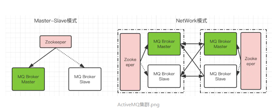 NetWork模式:两套主从Master-Slave节点。由网络联通,将其变为分布式的集群架构。