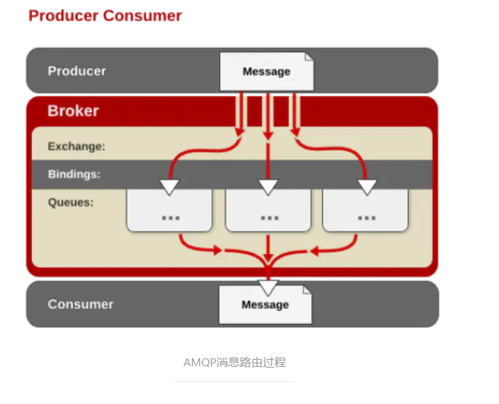 AMQP中消息的路由过程和JMS存在一些差别。AMQP中增加了Exchange和Binging的角色。生产者把消息发布到Exchange上,消息最终到达队列并被消费者接收,而Binding决定交换器的消息应该发送到哪个队列。