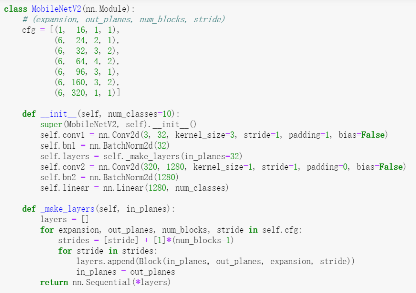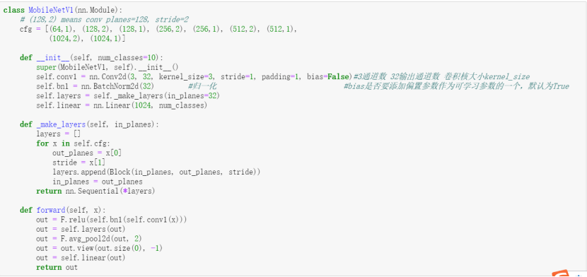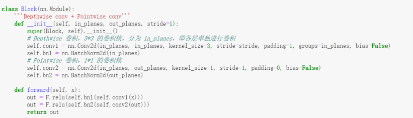 MobileNet是Google于2017年发布的网络架构,因为之前的VGG,GoogleNet,ResultNet进一步提高CNN的性能,但是到ResNet网络已经达到了152层,参数量到了300多MB,这不仅是巨大的存储和计算开销,也严重限制了CNN的应用。MobileNet应运而生,其中V1版本的主要核心是把卷积拆分为Depthwise+Pointwise两部分,代码如下: