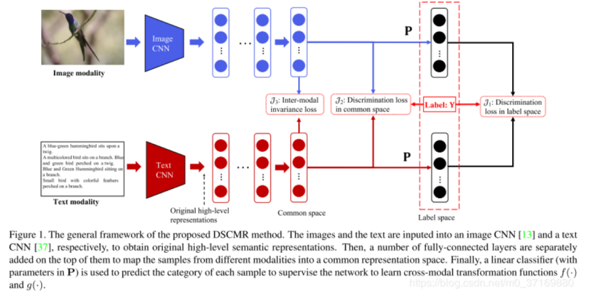 主要是使用VGG19网络进行图像的特征提取,word2vec、CNN提取文本特征,创建线性分类器对样本生成标签,主要贡献是提出了一种基于深度监督的跨模态学习结构,可以有效的学习异构数据的公共表示;并且利用线性分类器对公共表示空间中的样本进行分类,使得学习的公共表示具有显著的区分性。