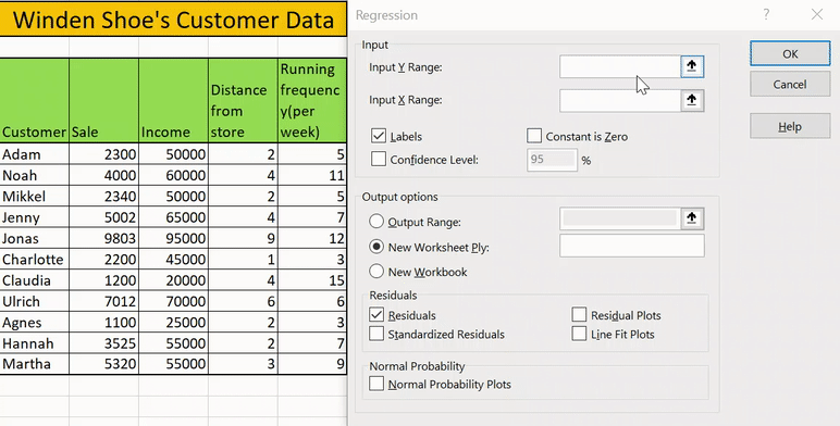 在这里,我们的模型估计,亚历山德先生将支付4218购买他的新鞋!这就是简单地在Microsoft Excel中进行线性回归的能力。