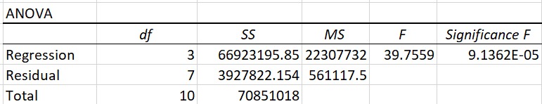 它包括一个非常重要的指标,显著性F(或P值),它告诉我们你的模型是否具有统计显著性。