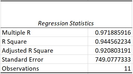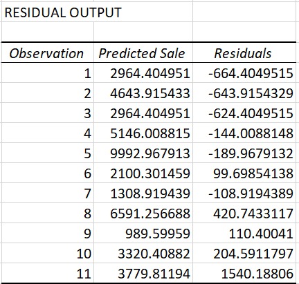 实施线性回归模型是最简单的部分。现在是我们分析的棘手方面——在Excel中解释预测模型的结果。