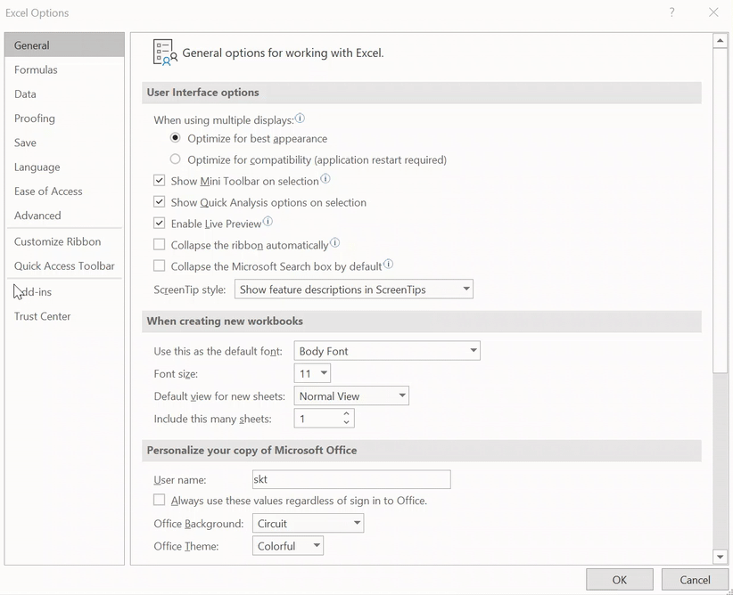 转到左侧面板上的加载项->管理Excel加载项->转到: