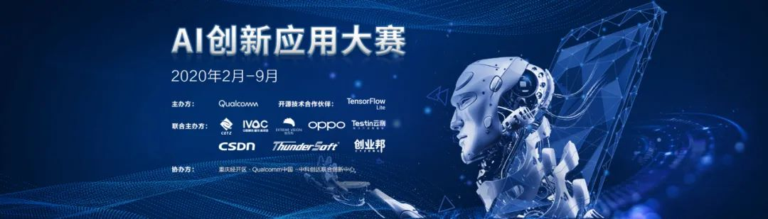 在这一背景下,由Qualcomm(高通公司)、中国智谷·重庆经开区、CSDN、Testin云测、OPPO、极视角、中科创达、创业邦联合主办,重庆经开区·Qualcomm中国·中科创达联合创新中心协办,TensorFlow Lite 作为开源技术合作伙伴的行业内专业性质的“Qualcomm人工智能创新应用大赛”于今年2月正式启动。