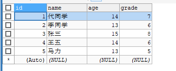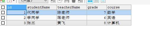 对应要联合查询的DTO实例,创建表SQL在上个博客页面里有, 数据内容如下: