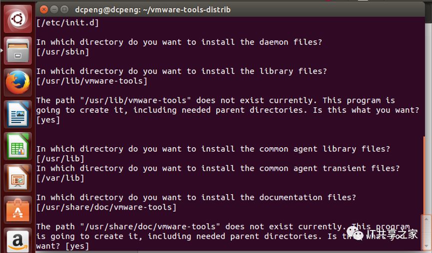 14、执行安装命令“sudo./ vmware-install.pl”,输入密码,赋予执行权限,等待VMware增强工具进行安装,如下图所示。如果弹出询问的界面,输入“yes”默认安装即可,如下图红色框框所示。